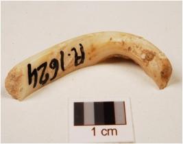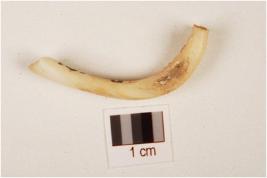 | Description / विवरण | Fragment of bone point, broken into two pieces, one side pointed but slightly broken smooth and polished surface. |