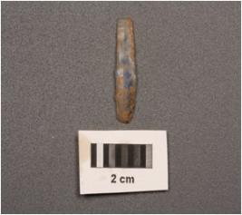 | Description / विवरण | Parallel-sided microlith blade with mid-ridges on dorsal, triangular in section and use-wear marks on cutting edges. |