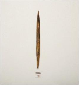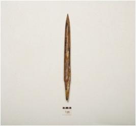 | Description / विवरण | Bone point pointed one end and broken on other end, slightly chipped off from surface polished and smooth surface. |