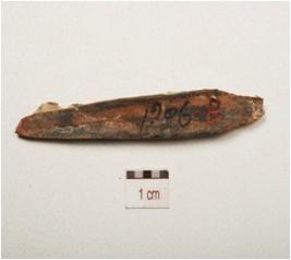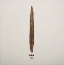 | Description / विवरण | Bone point pointed both ends but broken, groove line an one side, smooth and polished surface. |
