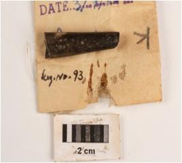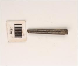 | Description / विवरण | A fragment of charred bone point, broken tip, broken at the bottom, smooth surface. |