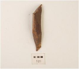 | Description / विवरण | A flake made on chert, flake scars on dorsal side, sharp edge, pointed both end, diffussed bulb and triangular section. |