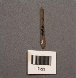 | Description / विवरण | Parallel sided microlithic blade with prominent mid ridge on dorsal and triangular in section. |