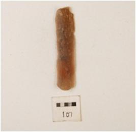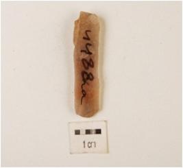 | Description / विवरण | A blade made on chalcedony, use wear mark on edge and one ridge on dorsal side rectangular section and bulb on ventral. |