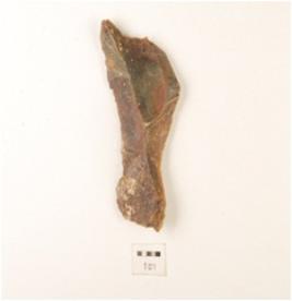 | Description / विवरण | Utilize flake made on chert, flake scars on dorsal side, sharp cutting edge and triangular section. |