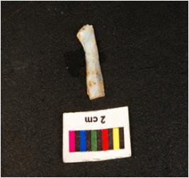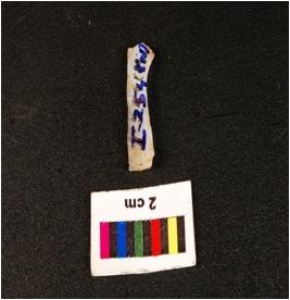 | Description / विवरण | Chalcedony blade, double ridge on a dorsal , diffused bulb on ventral , trapezoidal in section, broken at distal end and use wear marks along the cutting edges. |