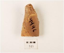| Description / विवरण | A flake made on chert, triangular section, flake scars on dorsal one end broken and sharp cutting edge. |