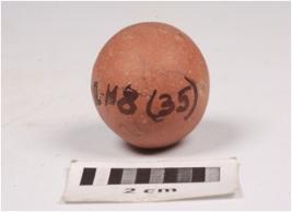 | Description / विवरण | A handmade terracotta sling ball, well baked and surface treated with a slip in red colour. |