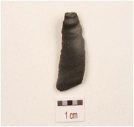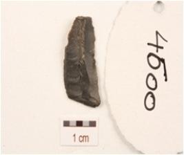 | Description / विवरण | Blade made on chert with ridge on dorsal side, prominent bulb on ventral side and use-wear marks on along cutting edges. |