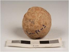 | Description / विवरण | Handmade terracotta sling ball-circular in shape, well baked and uneven in surface. Surface has wash in dull red. |