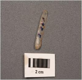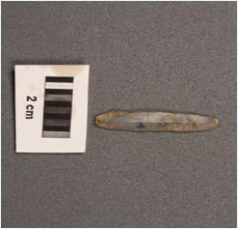 | Description / विवरण | Parallel sided microlithic blade with use wear marks on cutting edges, prominent bulb on ventral and prominent mid ridge on dorsal surface. |