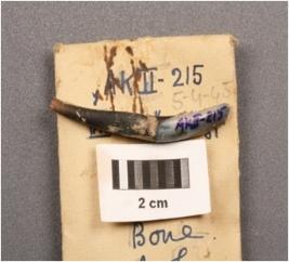 | Description / विवरण | A bone made awl curved in shape, sharp tip in missing. Its graded in white to black. |