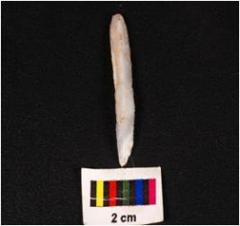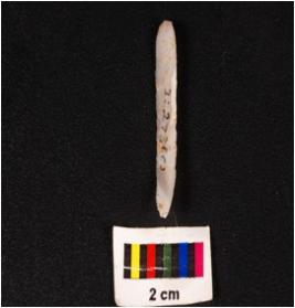 | Description / विवरण | Chalcedony blade with mid-ridge on the dorsal prepared platfrom, diffused bulb on the ventral side, pointed along the distal end and use-wear marks on the cutting edges. |