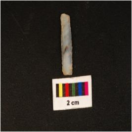 | Description / विवरण | Parallel sided chalcedony blade, mid-ridge on dorsal, flat ventral and use wear edges. |