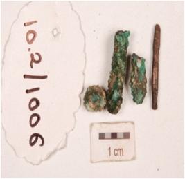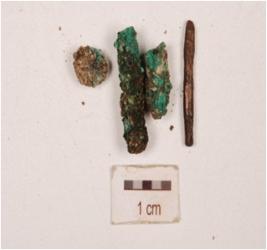 | Description / विवरण | Fragments of a copper nail with patina on the surface, it is corroded. |