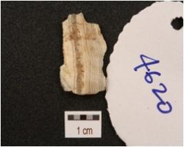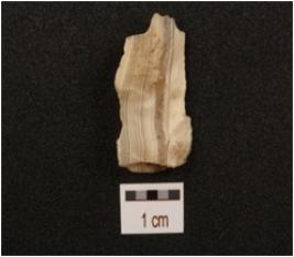 | Description / विवरण | A blade made on end struck agate flake, single ridge notch on one side, prepared platform and diffused bulb on ventral side. |
