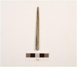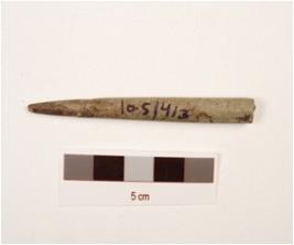 | Description / विवरण | Stone point with a circular cross section, broken at one end other end pointed and smooth surface. |