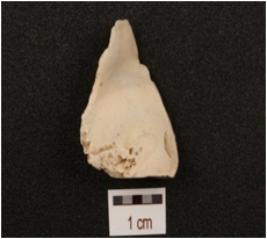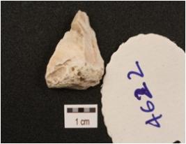 | Description / विवरण | A side scraper made on end struck chert flake, cortex on dorsal side, single ridge, prepared platform, diffused bulb on ventral side and used wear marks. |