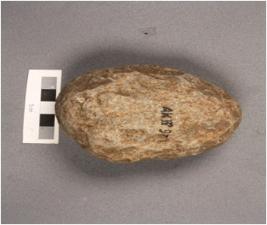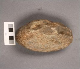 | Description / विवरण | Rubbing stone with the use wear mark on one surface, spherical on top and flat bottom. |