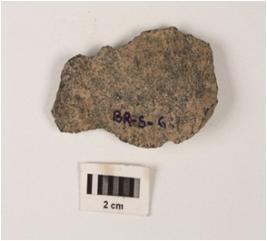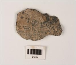 | Description / विवरण | A stone flake of granite. Rough surface and black in colour. Dust deposited can be seen. |