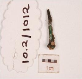 | Description / विवरण | A small copper nail with expended head and narrow at the end, broken and corroded surface. |
