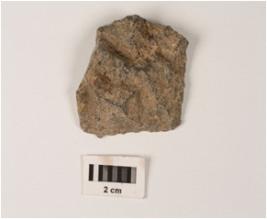| Description / विवरण | A stone flake of granite black in colour, flaking marks on surface and rough. |