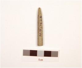 | Description / विवरण | Broken point with a pointed end, other end broken, polished surface and circular cross. |