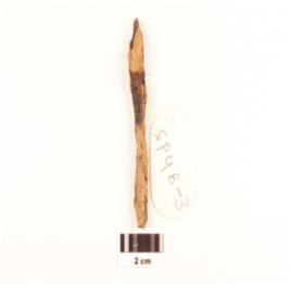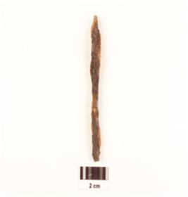 | Description / विवरण | A nail made on iron, pointed from one end, cracks on surface with rust. |