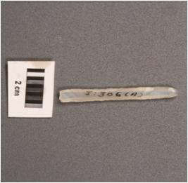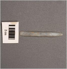 | Description / विवरण | Parallel blade on chalcedony with mid ridge on dorsal prominent bulb on ventral and use wear marks on both edges. |