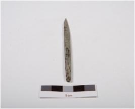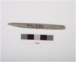 | Description / विवरण | Stone point long polished surface with pointed one end and partly broken at other end. |