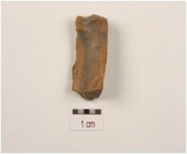 | Description / विवरण | A end scraper made on a chert side struck flake, cortex towards butt end, diffused bulb on ventral and regular retouching on the working edge. |