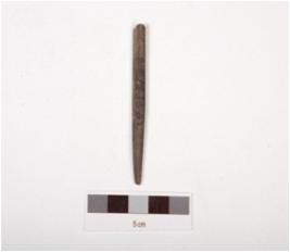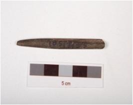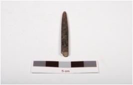 | Description / विवरण | A stone point with plano convex section, polished surface and broken from thick end. |
