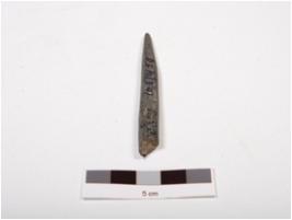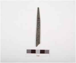 | Description / विवरण | A stone point with rectangular cross section, polished surface and broken from both ends. |