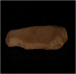 | Description / विवरण | Fragment of blade, made of chert with single ridge on dorsal, triangular section and prominent bulb on ventral. |