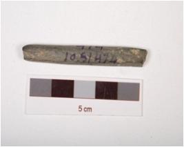 | Description / विवरण | Fragment of a stone point, long polished surface with circular in section and both ends at broken. |