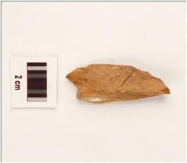 | Description / विवरण | A stone core made on chert, orange in colour flake marks on surface with mid ridge and prepared platform, on proximal end. |