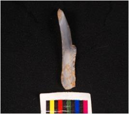 | Description / विवरण | Parallel sided blade, made on chalcedony mid ridge on dorsal ventral is smooth and use wear marks on edge. |