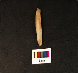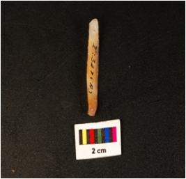 | Description / विवरण | Parallel sided microlithic blade with a prominent ridge on dorsal side, diffused bulb on ventral and use wear marks on cutting edges. |