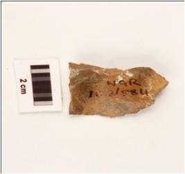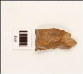 | Description / विवरण | A stone scrapper made on chert, brown in colour, prepared platform and use wear marks on edges, with prominent bulb. |