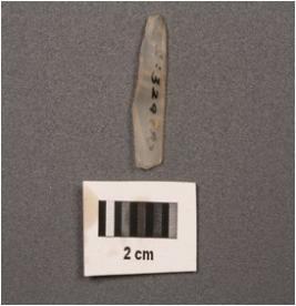 | Description / विवरण | Parallel sided microlithic blade with use-wear marks on cutting edges, ridge on dorsal prominent bulb on ventral and distal end broken. |