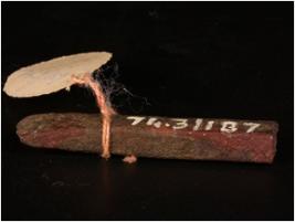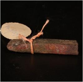 | Description / विवरण | Copper chisel. Square shaped section, top portion is broken, bottom portion is flat and surface has formation of patina. |
