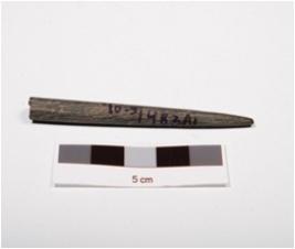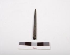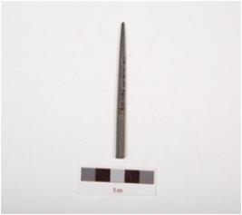 | Description / विवरण | Fragment of a stone point, long polished surface with one end pointed other end has thicker and broken. Circular in section. |
