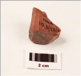 | Description / विवरण | A stone core made on chert, red in colour, blade scars on surface and prepared platform on proximal end. |