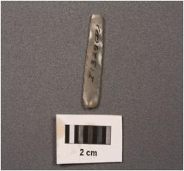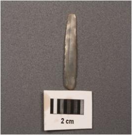 | Description / विवरण | Parallel sided microlithic blade with use-wear marks on cutting edges, a prominent mid-ridges on dorsal prominent bulb on ventral and triangular in section. |