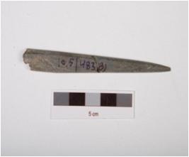 | Description / विवरण | Fragment of a stone point, long polished surface with rectangular in section one end pointed but both ends at broken. |