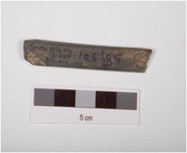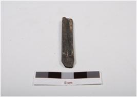 | Description / विवरण | Fragment of a stone point. Long rectangular shape with polished surface, rectangular in section and both ends at broken. |