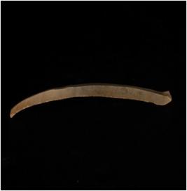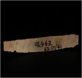 | Description / विवरण | Fragment of chert parallel sided blade with single ridge on dorsal and triangular section. |