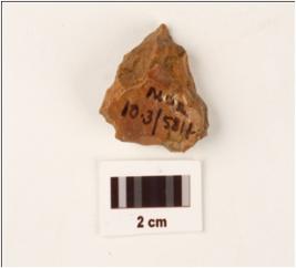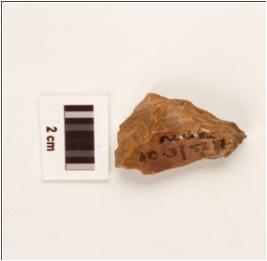 | Description / विवरण | A stone core made on chert, brown in colour, glossy surface and flake marks are visible. |