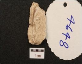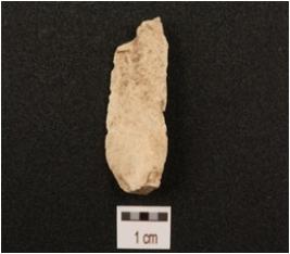 | Description / विवरण | A blade made on end struck chert flake prepared platform, prominent bulb ventral single ridge and used wear marks visible. |
