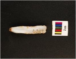 | Description / विवरण | Fragment of a chert blade with working edges and broken at distal end. |